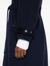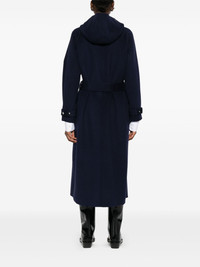 hooded coat Highlights - Dark blue - Raglan sleeves - Self-tie belt - Flap pockets Imported Composition Wool 82%, Polyamide 18% SIZE & FIT Model measurements Height 5 ft 10 in(1.78 m) Bust/Chest 31.49 in(80 cm) Hips 37 in(94 cm) Waist 23.62 in(60 cm) Washing instructions Read Manufacturer Guidelines