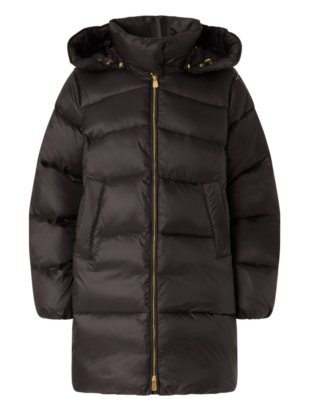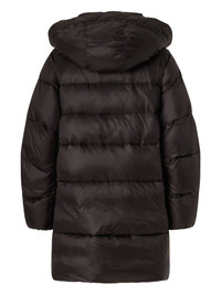 hooded puffer coat Highlights - Black - Quilted design - Hooded neckline - Zip fastening - Long sleeves - Straight hemline Imported Composition Outer: Polyamide 100% Washing instructions Read Manufacturer Guidelines