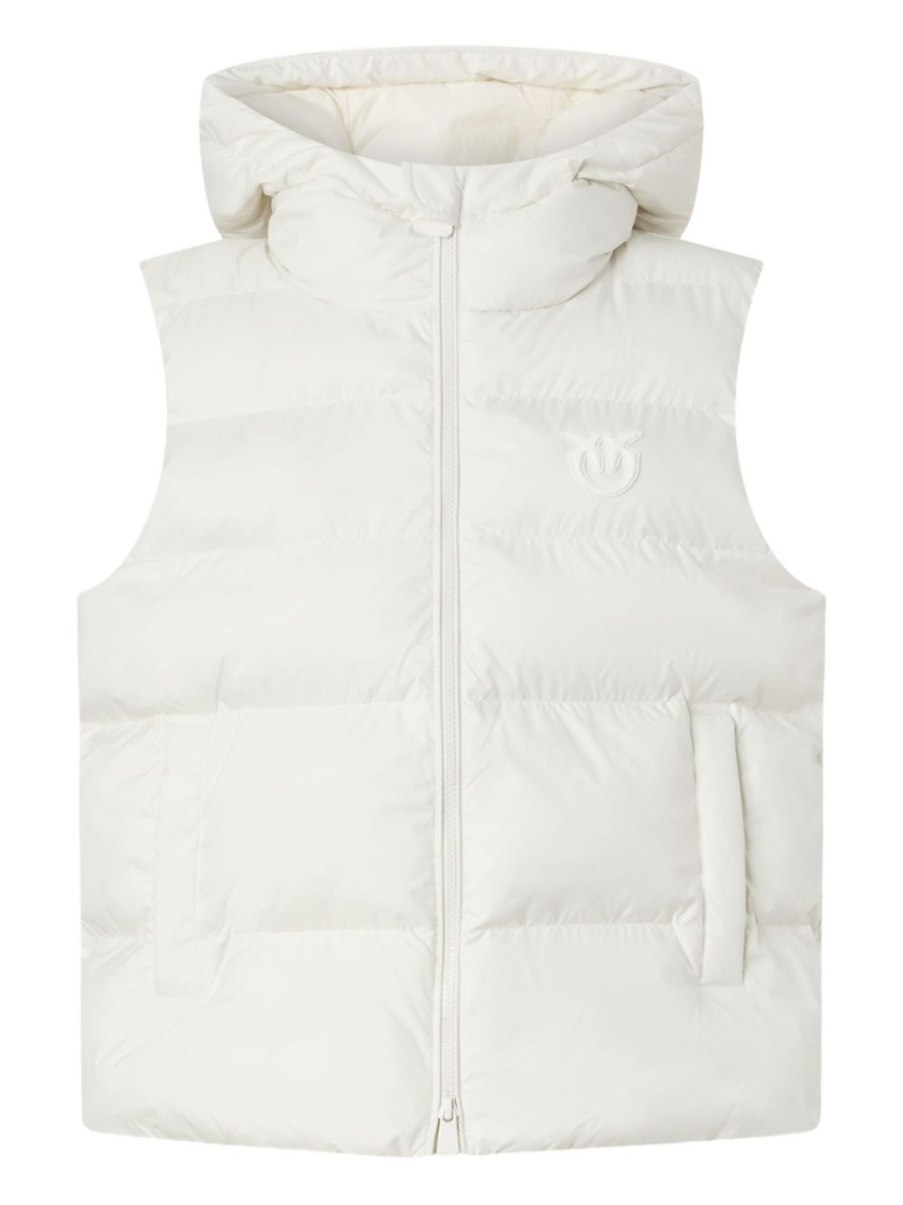 hooded quilted gilet Highlights - Off-white - Quilted design - Hooded - Zip fastening - Welt pockets - Logo detail Imported Composition Polyester 100% Washing instructions Read Manufacturer Guidelines