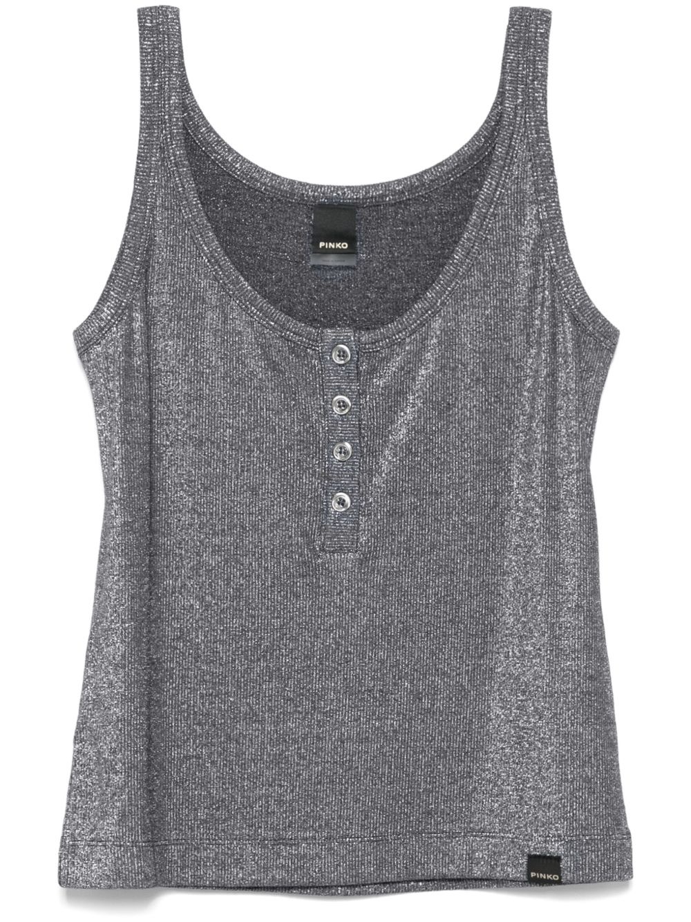 knitted tank top Highlights - Steel blue - Short front button fastening - Rounded collar - Sleeveless - Lurex detailing Imported Composition Nylon 100% SIZE & FIT Model measurements Height 5 ft 10 in(1.79 m) Bust/Chest 31.88 in(81 cm) Hips 35.43 in(90 cm) Waist 23.62 in(60 cm) FittingInformation Designed for a slim fit that sits just away from the body offering a close yet comfortable fit Made from a midweight non-stretch fabric, this piece offers minimal elasticity when worn Washing instructions Dry Clean Only