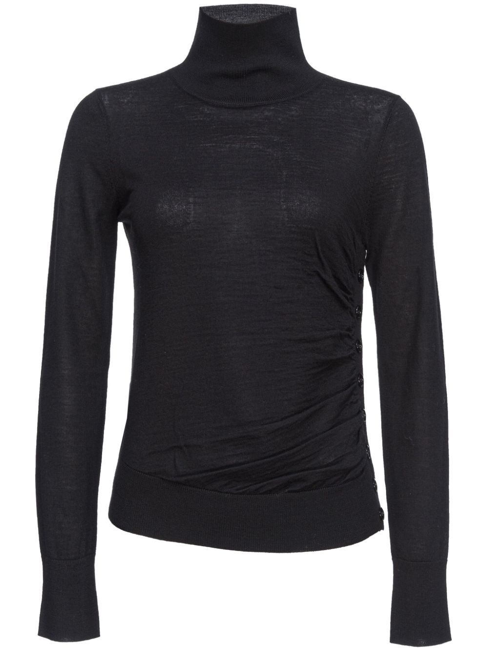 knitted wool crew neck Highlights - Black - Wool - Fine knit - Side decorative buttons - Crew neck - Elasticated hem - Elasticated cuffs Made in Italy Composition Wool 100%