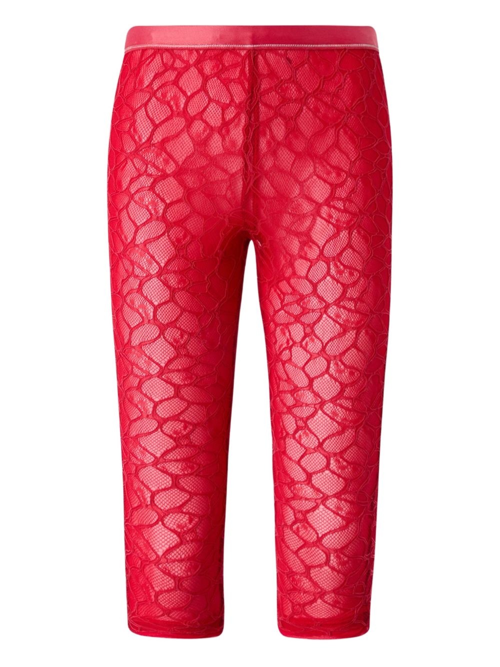 lace-detail cropped leggings Highlights - Bright red - Lace design - Elasticated waistband - Three-quarter length - Delicate floral pattern Made in Italy Composition Outer: Polyamide 86%, Elastane 14% Lining: Polyamide 100%