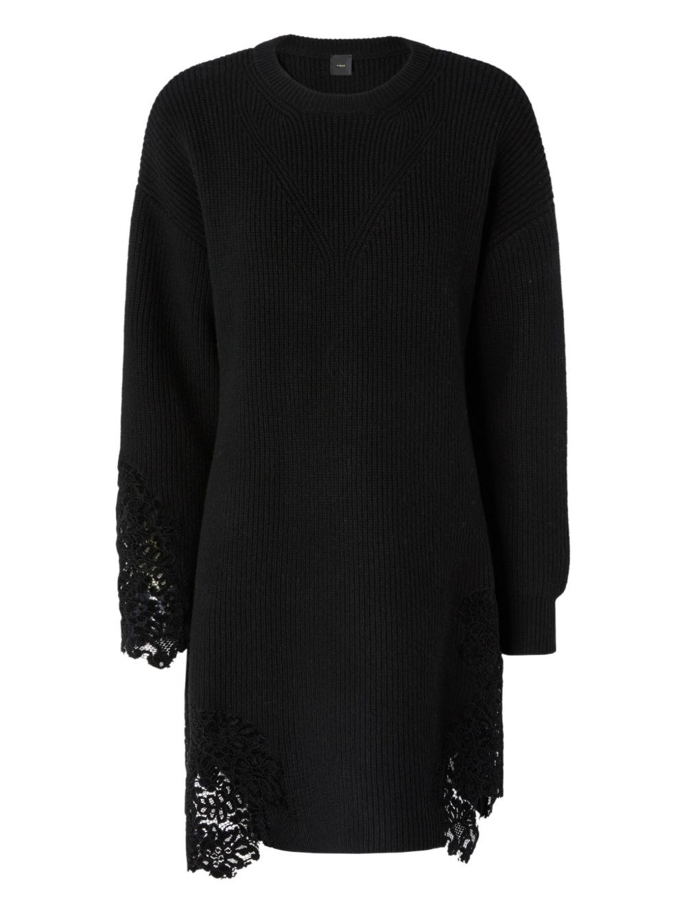 lace panel mini dress Highlights - Black - Lace panels - V-neck - Knitted construction - Long sleeves - Round neck Imported Composition Outer: Wool 75%, Nylon 25% Washing instructions Hand Wash