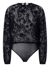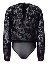 lace-pattern long-sleeve bodysuit Highlights - Black - Lace pattern - Long sleeves - Round neck - Rear tie fastening - Just a reminder that this piece must be tried on over your own garments. Imported Composition Cotton 54%, Polyamide 46%