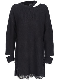 lace-trim cut-out knitted dress Highlights - Black - Cashmere blend - Knitted construction - Cut-out detailing - Lace trim - Round neck - Long sleeves - Straight hem Imported Composition Cashmere 74%, Polyamide 25%, Elastane 1% Washing instructions Hand Wash