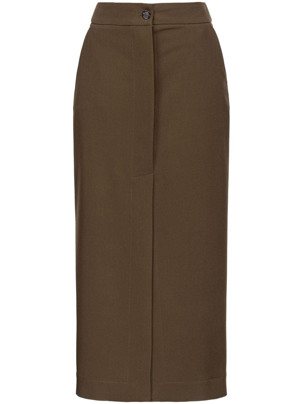 Lanterna front-slit midi skirt Highlights - Olive brown - Stretch-design - Concealed fly and button fastening - Rear flap pocket - Front slit - Straight hem - Mid-length Made in Italy Composition Polyester 72%, Viscose 23%, Elastane 5% Washing instructions Read Manufacturer Guidelines