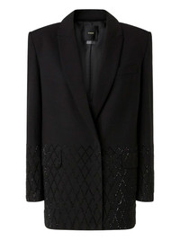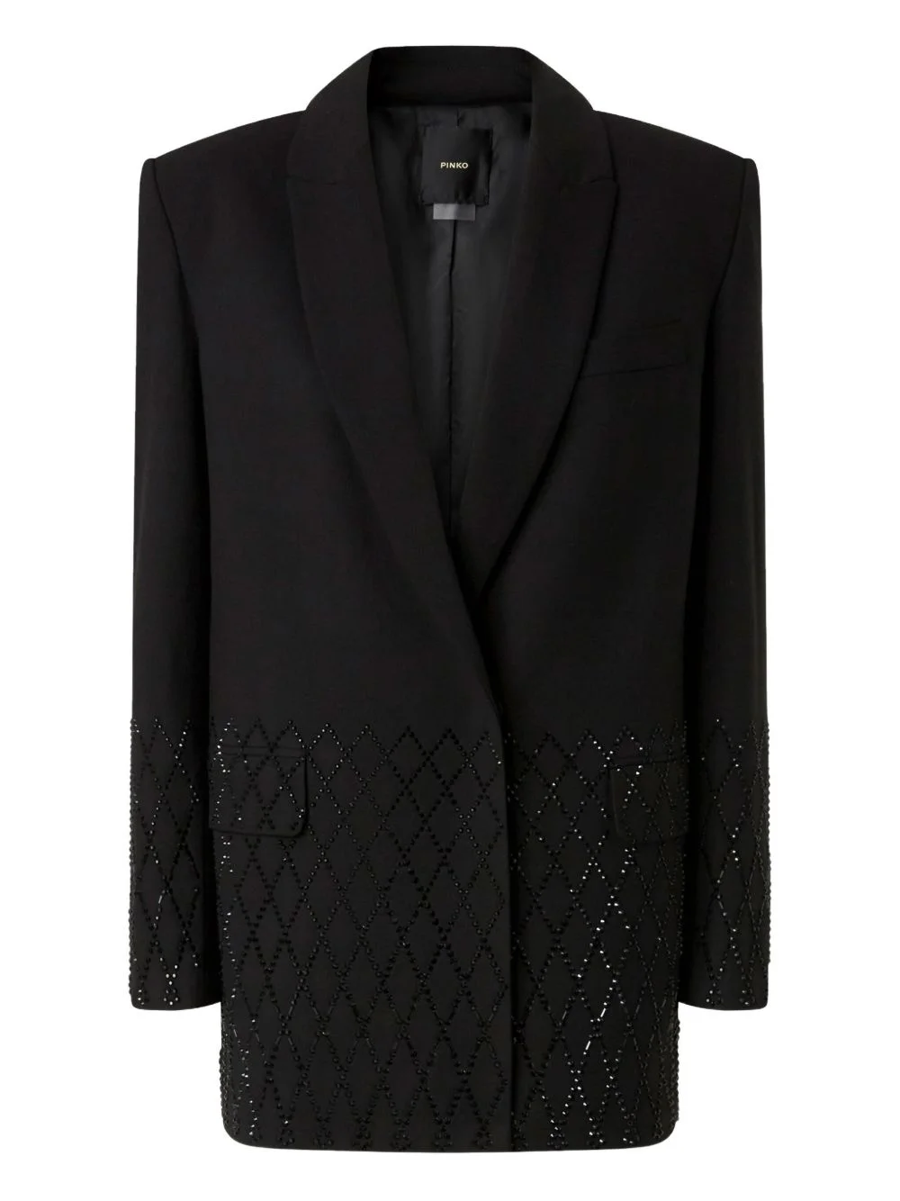Laser Game single-breasted blazer Highlights - Limousine black - Diamond-pattern embellishment - Single-breasted - Shawl lapels - Flap pockets - Long sleeves Imported Composition Polyester 92%, Viscose 6%, Elastane 2% Washing instructions Do Not Wash/Do Not Dry Clean
