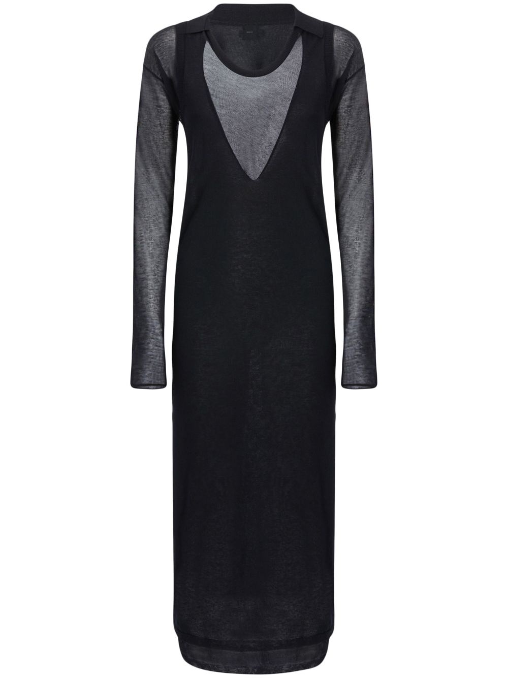 layered long dress Highlights - Black - Layered design - Classic collar - Round neck - Long length Imported Composition Cotton 85%, Polyamide 15%