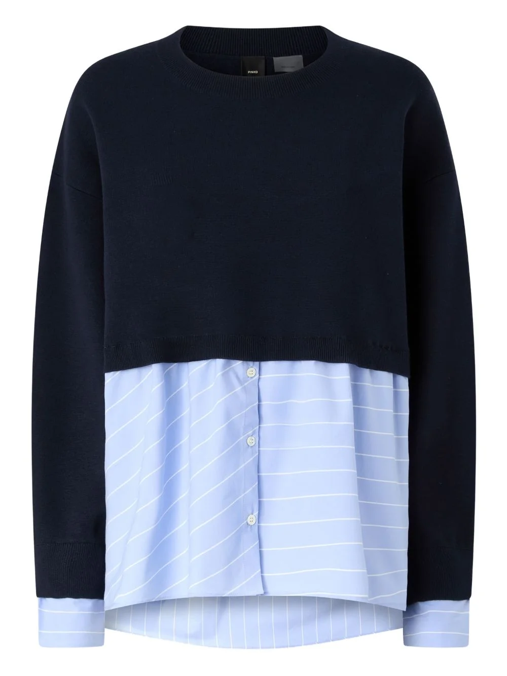 layered top Highlights - Blue - Round neck - Long sleeves - Layered design Imported Composition Cotton 67%, Nylon 28%, Elastane 5% Washing instructions Read Manufacturer Guidelines