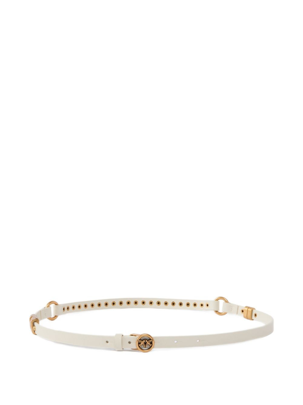 leather belt Highlights - White - Logo buckle - Eyelet detailing - Gold-tone hardware - Adjustable length - Pin buckle fastening Imported Composition Calf Leather 100% Washing instructions Do Not Wash/Do Not Dry Clean