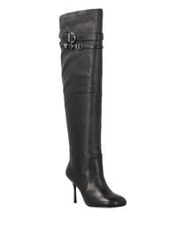 leather knee-length boots Highlights - Black - Side zip fastening - Decorative buckle detail - Round toe - Stiletto heel Imported Composition Leather 100%