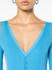 Legend semi-sheer cardigan Highlights - Splash blue - Cotton blend - Plisse effect - Semi-sheer construction - V-neck - Front button fastening - Long sleeves - Straight hem - Removable lining Made in Italy Composition Cotton 82%, Polyamide 18% SIZE & FIT Model measurements Height 5 ft 9 in(1.76 m) Bust/Chest 31.88 in(81 cm) Hips 35.43 in(90 cm) Waist 24.8 in(63 cm) FittingInformation Designed for a slim fit that sits just away from the body offering a close yet comfortable fit This piece fits true to size – take your usual size Washing instructions Hand Wash