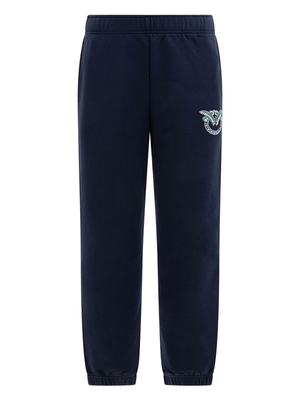 logo-embellished track pants Highlights - Navy blue - Elasticated waistband - Adjustable drawstring - Ribbed cuffs - Side slip pockets - Decorative logo embellishment Imported Composition Cotton 100%