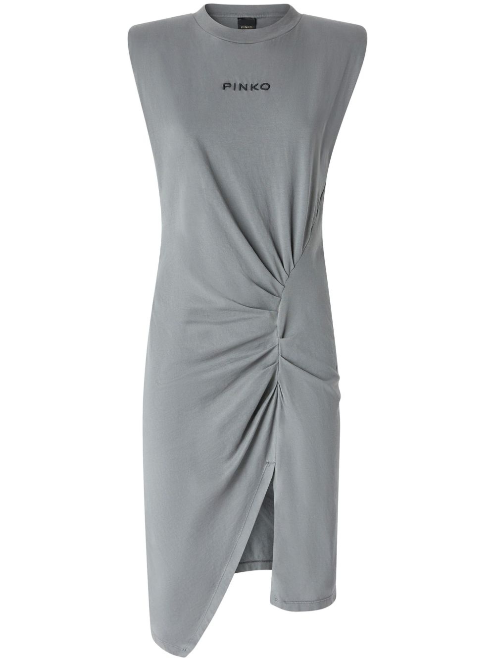 logo-embroidered mini dress Highlights - Slate grey - Crew neck - Sleeveless - Front slit - Gathered detailing Imported Composition Cotton 100%
