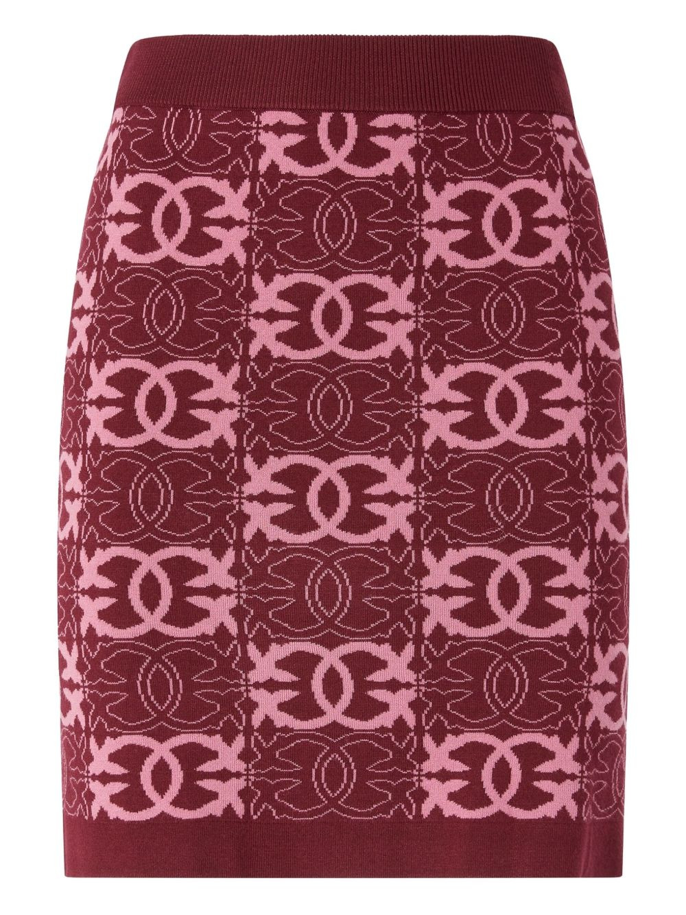 logo-pattern knit skirt Highlights - Burgundy - Geometric-logo pattern - Knit fabric - Straight hem Imported Composition Viscose 72%, Polyester 28% Washing instructions Hand Wash