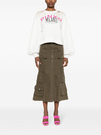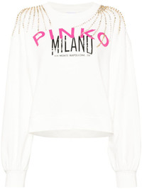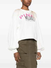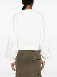 logo-print crystal-embellished sweatshirt Highlights - Optical white - Cotton - Logo print to the front - Crystal embellishment - Crew neck - Drop shoulder - Long puff sleeves - Fitted-cuff sleeves - Straight hem Imported Composition Cotton 100%, glass 100%, Zinc 100% SIZE & FIT Model measurements Height 5 ft 11 in(1.8 m) Bust/Chest 31.49 in(80 cm) Hips 36.61 in(93 cm) Waist 24.4 in(62 cm) FittingInformation Designed for a relaxed fit, this piece allows for comfort and movement when worn Made from a midweight non-stretch fabric, this piece offers minimal elasticity when worn This piece fits true to size – take your usual size Washing instructions Hand Wash