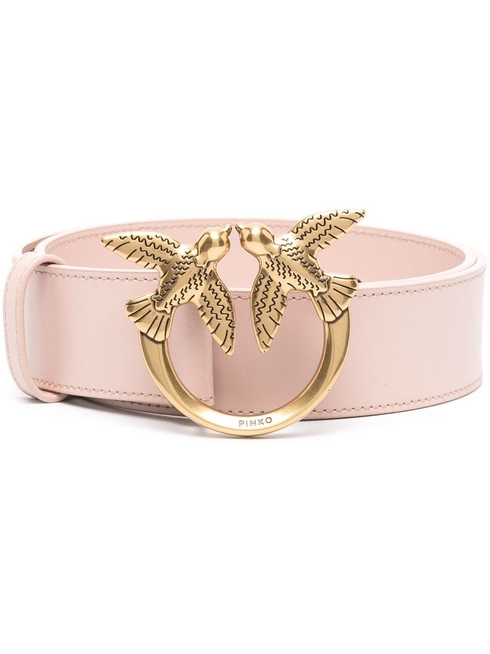 Love Birds buckle belt Highlights - Pink - Calf leather - Signature love birds buckle - Punched holes - Adjustable fit Imported Composition Outer: Calf Leather 100% SIZE & FIT Measurement Maximum Length 31.49 in(80 cm) Minimum Length 27.55 in(70 cm) WIDTH 1.57 in(4 cm)