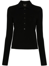 Love Birds embroidery polo top Highlights - Black - Stretch-design - Signature love birds embroidery - Polo collar - Long sleeves - Straight hem - Front button placket Made in Italy Composition Viscose 92%, Elastane 8% SIZE & FIT Model measurements Height 5 ft 10 in(1.78 m) Bust/Chest 32.67 in(83 cm) Hips 35.43 in(90 cm) Waist 23.22 in(59 cm) FittingInformation Designed for a slim fit that sits just away from the body offering a close yet comfortable fit Made from a midweight stretch fabric, this piece offers elasticity and flexibility when worn This piece fits true to size – take your usual size