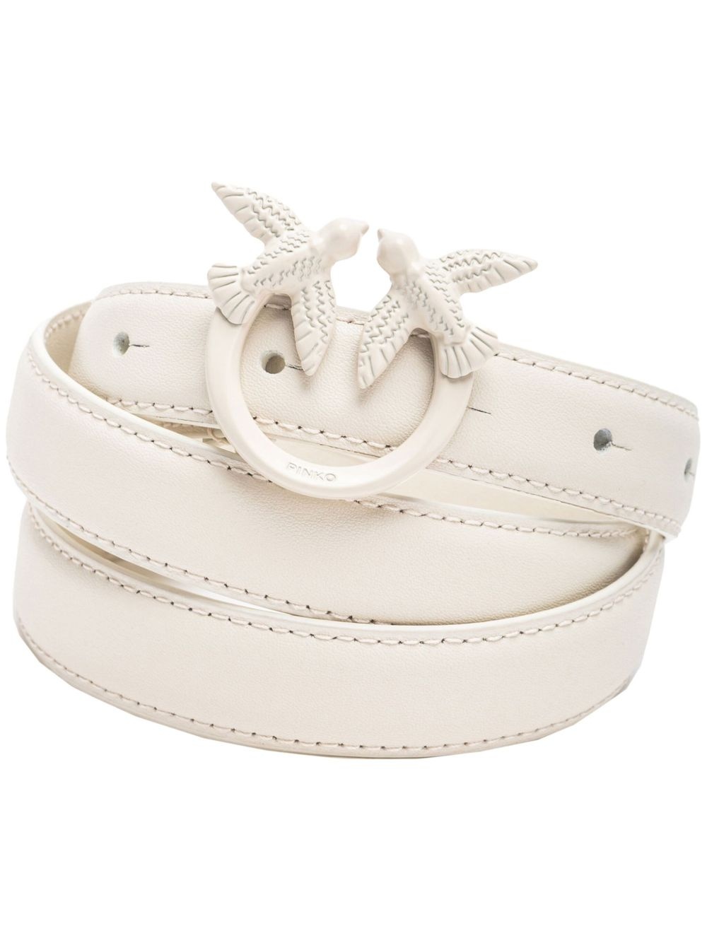 Love Birds leather belt Highlights - White - Leather - Grained texture - Signature love birds buckle - Logo-buckle fastening - Punched holes - Adjustable fit Imported Composition Bovine Split Leather 100% SIZE & FIT Measurement Maximum Length 40.15 in(102 cm) WIDTH 0.78 in(2 cm)