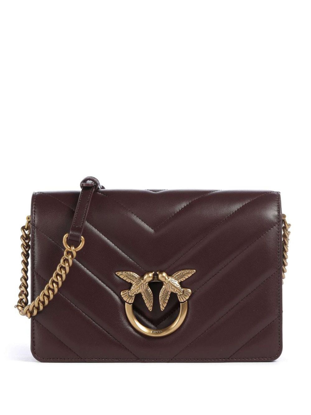 Love Birds shoulder bag Highlights - Brown - Foldover top with magnetic fastening - Chevron quilting - Signature love birds buckle - Partitioned compartment Imported Composition Outer: Sheepskin 100% SIZE & FIT Measurement DEPTH 3.54 in(9 cm) HEIGHT 6.29 in(16 cm) STRAP 43.3 in(110 cm) WIDTH 10.23 in(26 cm)