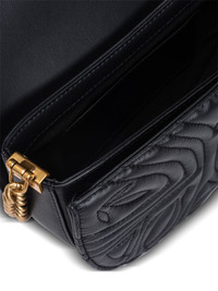 Love leather crossbody bag Highlights - Black - Leather - Signature love birds buckle - Quilted - Leather and chain-link shoulder strap - Foldover top with magnetic fastening - Main compartment - Internal card slot - Debossed internal logo Imported Composition Outer: Goat Skin 100%, Leather 100% Washing instructions Do Not Wash/Do Not Dry Clean