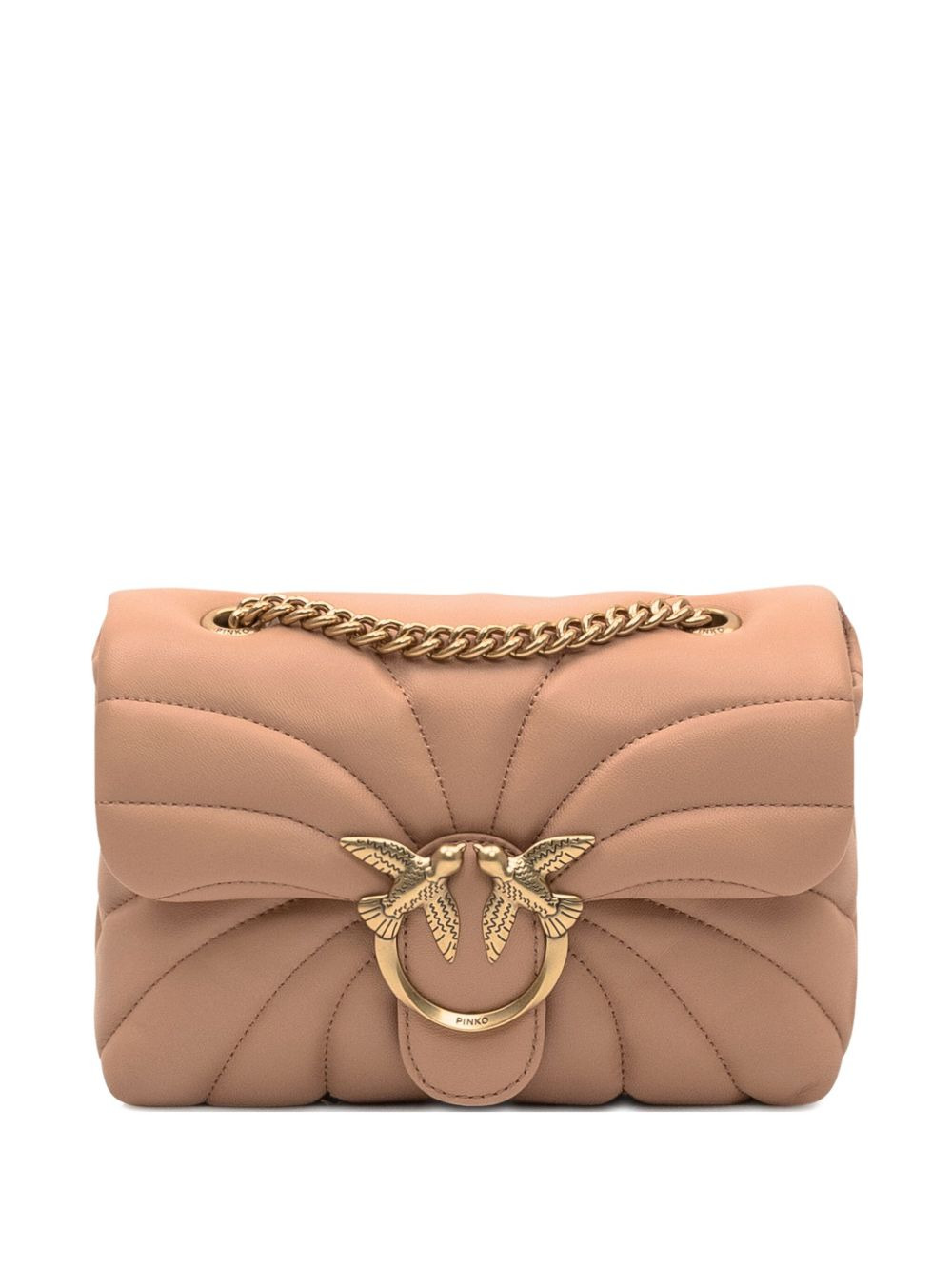 Love quilted logo-embellished shoulder bag Highlights - Pink - Quilted design - Gold-tone logo detail - Chain strap - Flap closure Imported Composition Lining: Cotton 100% Outer: Sheepskin 100% SIZE & FIT Measurement DEPTH 4.33 in(11 cm) HEIGHT 6.69 in(17 cm) WIDTH 10.23 in(26 cm)