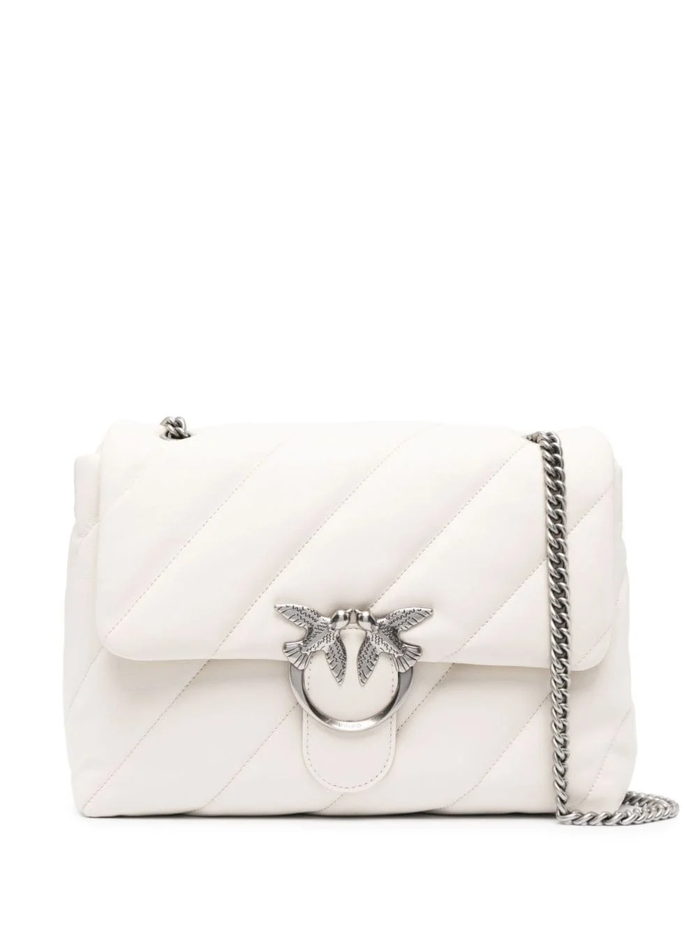 Love quilted shoulder bag Highlights - Optical white - Metal/calf leather - Quilted - Silver-tone logo plaque - Detachable chain-link shoulder strap - Foldover top with magnetic fastening - Partitioned compartment - Internal zip-fastening pocket - Internal slip pocket Imported Composition Outer: Calf Leather 100%, Metal 100% SIZE & FIT Model measurements Height 5 ft 10 in(1.77 m) Bust/Chest 32.28 in(82 cm) Hips 35.03 in(89 cm) Waist 25.19 in(64 cm) Measurement DEPTH 4.72 in(12 cm) HANDLE 11.02 in(28 cm) HEIGHT 8.26 in(21 cm) STRAP 20.07 in(51 cm) WIDTH 12.59 in(32 cm)