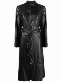 Maris faux-leather belted dress Made in Italy, PINKO's Maris dress is produced in a faux-leather construction. The tonal shirt design features a belted waist, long sleeves and classic collar, exhibiting the brand's effortless aesthetic. Made in Italy Composition Outer: Polyester 100%, Polyurethane 100% Lining: Acetate 70%, Polyester 30% SIZE & FIT Model measurements Height 5 ft 10 in(1.79 m) Bust/Chest 31.49 in(80 cm) Hips 35.03 in(89 cm) Waist 24.01 in(61 cm) FittingInformation This piece fits true to size. We recommend you get your regular size Cut for a loose fit. Comes with an adjustable belt for a flexible fit at the waist Made with a mid-weight fabric Washing instructions Machine Wash
