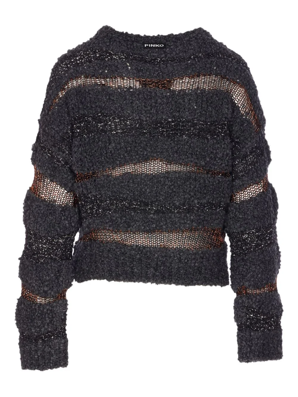 metallic-effect knitted sweater Highlights - Grey - Crew neck - Knitted - Metallic effect - Long sleeves - Transparent effect Made in Italy Composition Acrylic 52%, Mohair 20%, Wool 18%, Polyester 10% Washing instructions Read Manufacturer Guidelines
