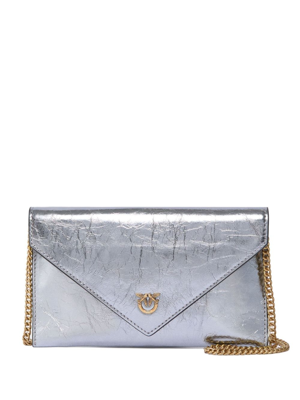 metallic flap chain clutch Highlights - Grey - Calfskin leather - Envelope flap - Gold-tone clasp - Chain strap - Embossed logo Imported Composition Outer: CALFSKIN 100%