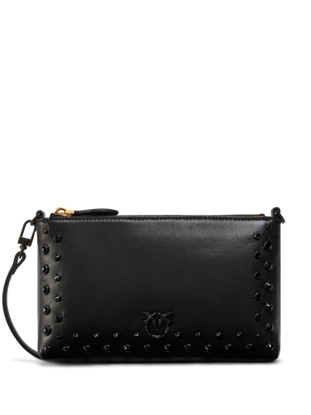 mini leather wallet Highlights - Black - Leather - Zip-fastening compartment - Embossed logo to the front - Adjustable detachable shoulder strap - Rectangle shape Imported Composition Outer: Ram Leather 100%, Sheepskin 100% Lining: Polyester 100%