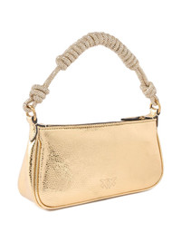 MINI HALF MOON BAGUETTE SMALL HANDBAG IN LAMINATED LEATHER WITH RHINESTONES