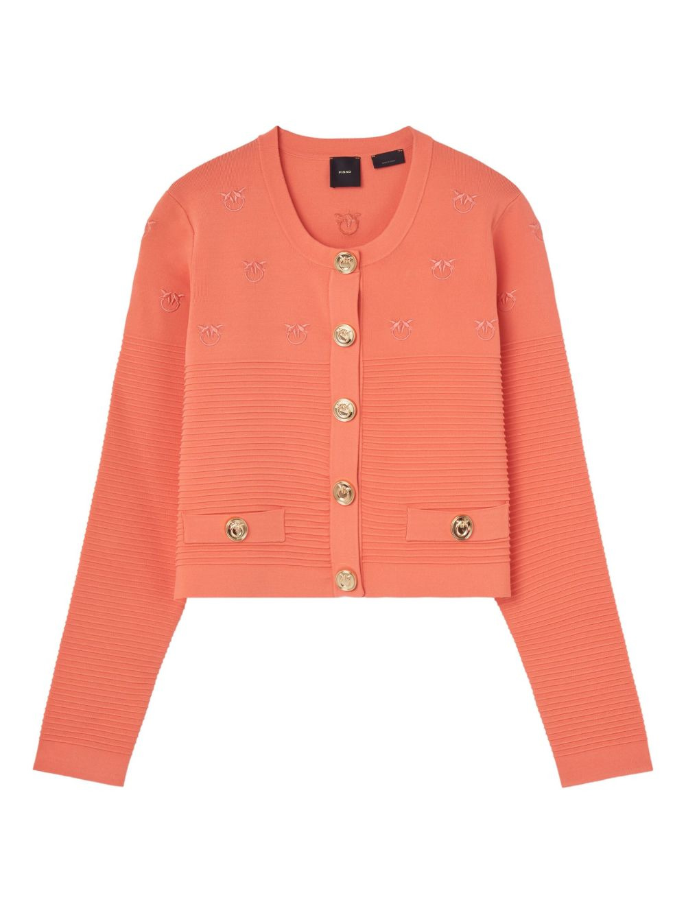 motif-embroidered ribbed jacket Highlights - Coral pink - Ribbed texture - Embroidered detail - Gold-tone buttons - Front pockets - Long sleeves Imported Composition Fabric 100% Washing instructions Read Manufacturer Guidelines