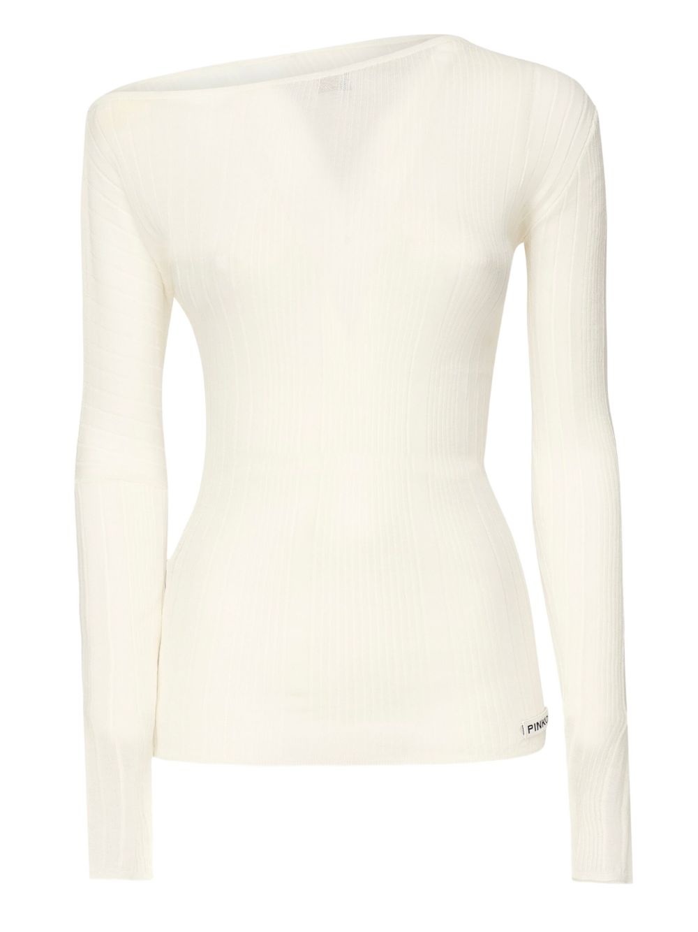 off-shoulder ribbed sweater Highlights - Off-white - Ribbed knit - Long sleeves - Semi-sheer - Off-shoulder neckline Imported Composition Cotton 82%, Polyamide 18% Washing instructions Read Manufacturer Guidelines