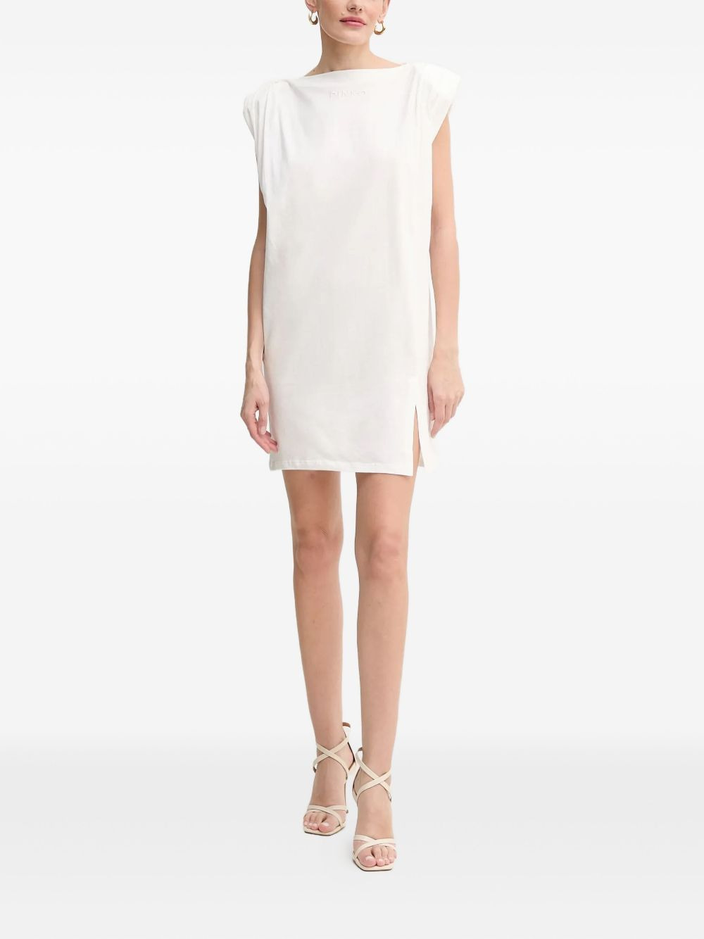 padded-shoulder dress Highlights - White - Padded shoulders - Boat neck - Side split - Sleeveless - Embroidered logo Imported Composition Cotton 100% Washing instructions Read Manufacturer Guidelines