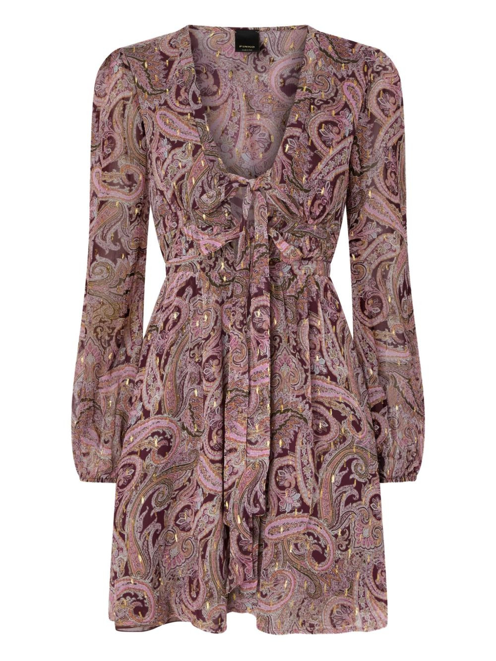 paisley-print tie-neck mini dress Highlights Made in Italy Composition Polyester 100%, Viscose 99%, Metallised Fibres 1%