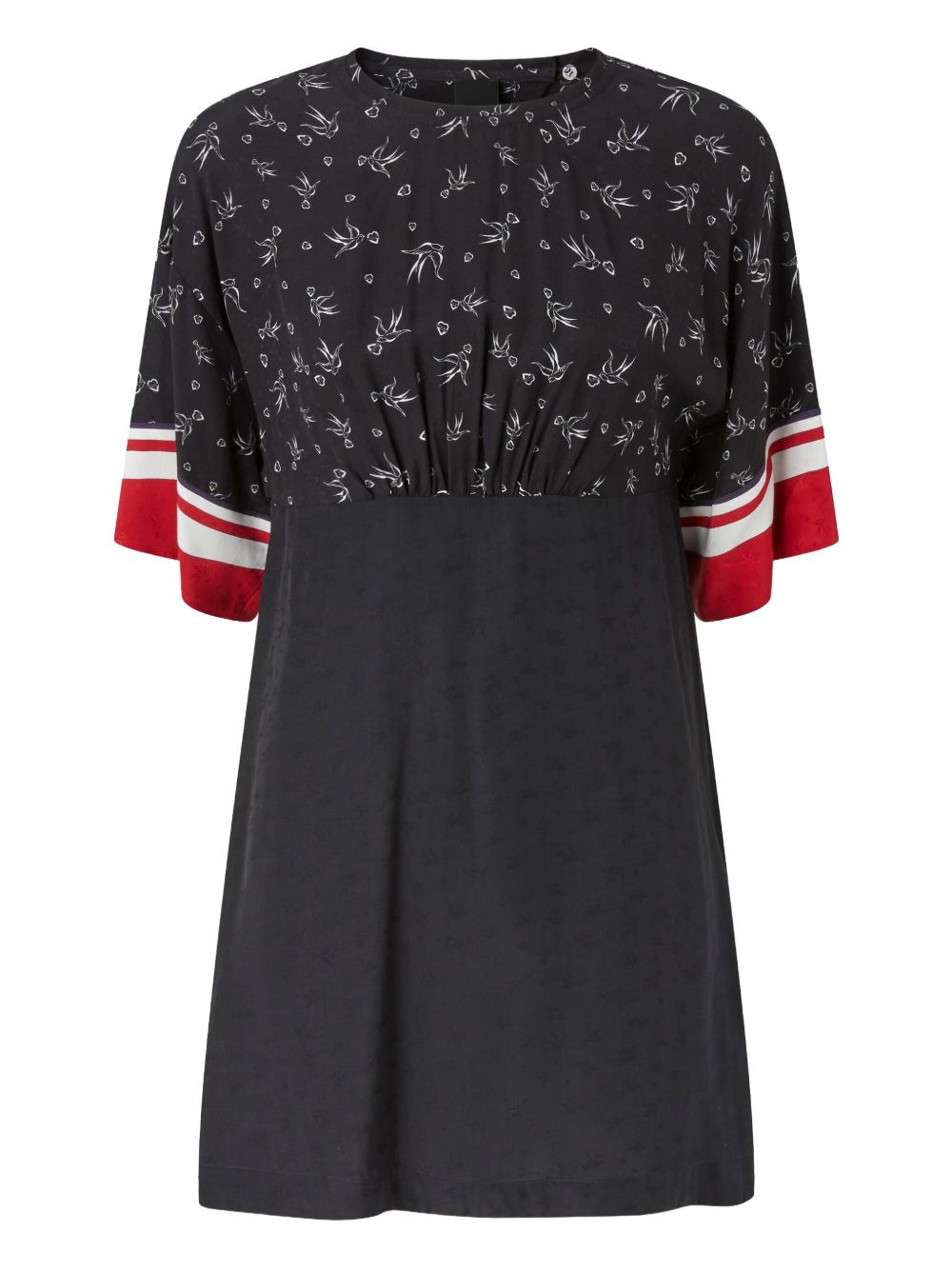 panelled mini dress Highlights - Black - Short sleeves - Button fastening Imported Composition Viscose 100% Washing instructions Specialist Cleaning