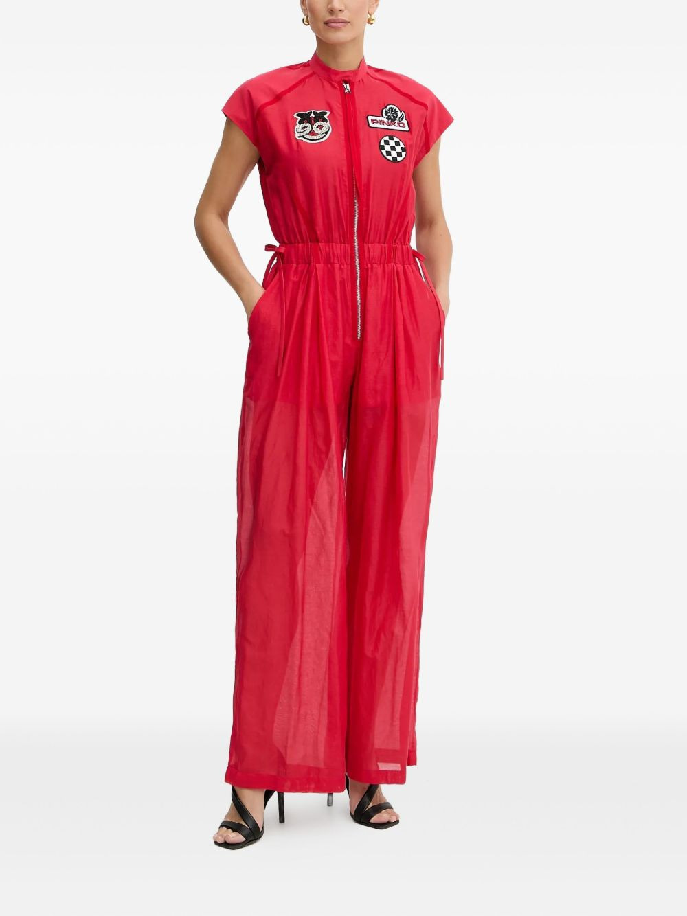 patch-detail jumpsuit Highlights - Red - Zip fastening - Short sleeves - Multiple patches - Drawstring waist - Elasticated waistband Imported Composition Viscose 60%, Cotton 40% Washing instructions Read Manufacturer Guidelines