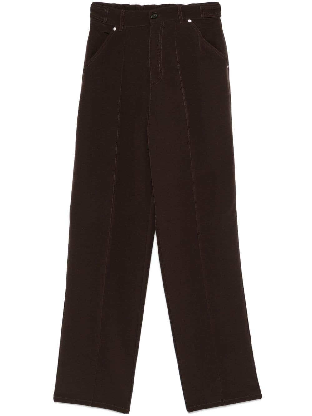 Pentola trousers Highlights - Coffee brown - Concealed front fastening - Belt loops - High waist - Waist tabs - Rear elasticated waistband - Raised seam detail - Two side slash pockets - Two rear patch pockets - Straight leg Made in Italy Composition Outer: Polyester 89%, Spandex/Elastane 11% Lining: Acetate 67%, Polyester 33% SIZE & FIT Model measurements Height 5 ft 10 in(1.78 m) Bust/Chest 33.46 in(85 cm) Hips 36.22 in(92 cm) Waist 23.22 in(59 cm) FittingInformation Designed for a straight-leg fit, these trousers allow for a close fit at the waist and an unrestricted, comfortable fit over the leg Made from a midweight non-stretch fabric