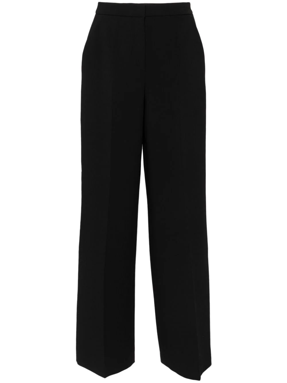 Pergamino tailored trousers Highlights - Black - Crepe texture - Stretch-design - Pressed crease - Hook and zip fly fastening - Two side slash pockets - Two rear welt pockets - Straight leg - Tailored cut Made in Italy Composition Outer: Polyester 94%, Elastane 6% Lining: Acetate 67%, Polyester 33% SIZE & FIT Model measurements Height 5 ft 9 in(1.75 m) Bust/Chest 31.88 in(81 cm) Hips 34.64 in(88 cm) Waist 24.01 in(61 cm) FittingInformation Designed with a wide-leg cut, these trousers allow for a close fit at the waist and offer a loose and roomy fit over the leg Made from a midweight stretch fabric, this piece offers elasticity and flexibility when worn This piece fits true to size – take your usual size Washing instructions Hand Wash