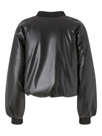 faux-leather bomber jacket Highlights - Black - Ribbed knit bomber collar - Raglan shoulders - Side pockets - Gathered hem - Front zip closure Imported Composition Polyester 100% Washing instructions Hand Wash