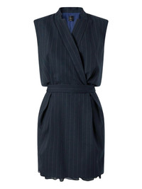 pinstripe wrap mini dress Highlights - Blue/white - Pinstripe pattern - Wrap design - Sleeveless - Belt - Pleated hem Made in Italy Composition Outer: Polyester 54%, Wool 44%, Elastane 2% Lining: Polyester 100% Washing instructions Dry Clean Only