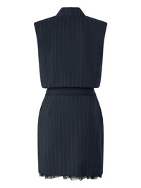 SLEEVELESS SHORT DRESS IN PINSTRIPE POLY WOOL