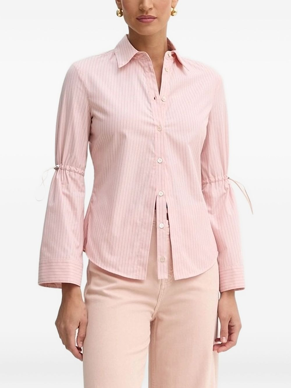 pinstriped tie-cuff shirt Highlights - Pink - Pinstripe pattern - Button fastening - Tie cuffs - Long sleeves Imported Composition Cotton 100% Washing instructions Read Manufacturer Guidelines