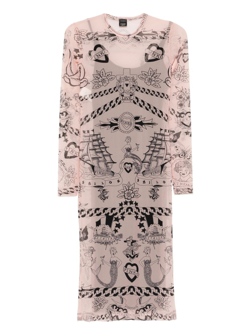 printed mesh midi dress Highlights - Blush pink - Tattoo print - Long sleeves - Round neck - Interior slip-dress Made in Italy Composition Outer: Nylon 80%, Elastane 20% Lining: Nylon 90%, Elastane 10% SIZE & FIT Model measurements Height 5 ft 9 in(1.75 m) Bust/Chest 32.67 in(83 cm) Hips 36.22 in(92 cm) Waist 24.8 in(63 cm) Washing instructions Machine Wash