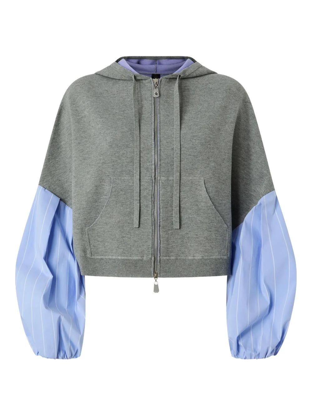 puff-sleeve hoodie Highlights - Grey - Hooded - Zip fastening - Striped puff sleeves - Front pouch pockets Imported Composition Cotton 67%, Nylon 28%, Elastane 5% Washing instructions Read Manufacturer Guidelines
