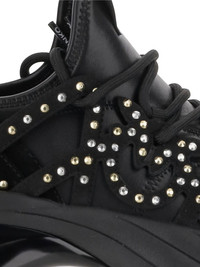 rhinestone-embellished lace-up sneakers Highlights - Black - Leather upper - Rhinestone embellishments - Lace-up front - Rubber sole - Round toe Imported Composition Outer: Nylon 100% Sole: Rubber 100% Lining: Fabric 100%