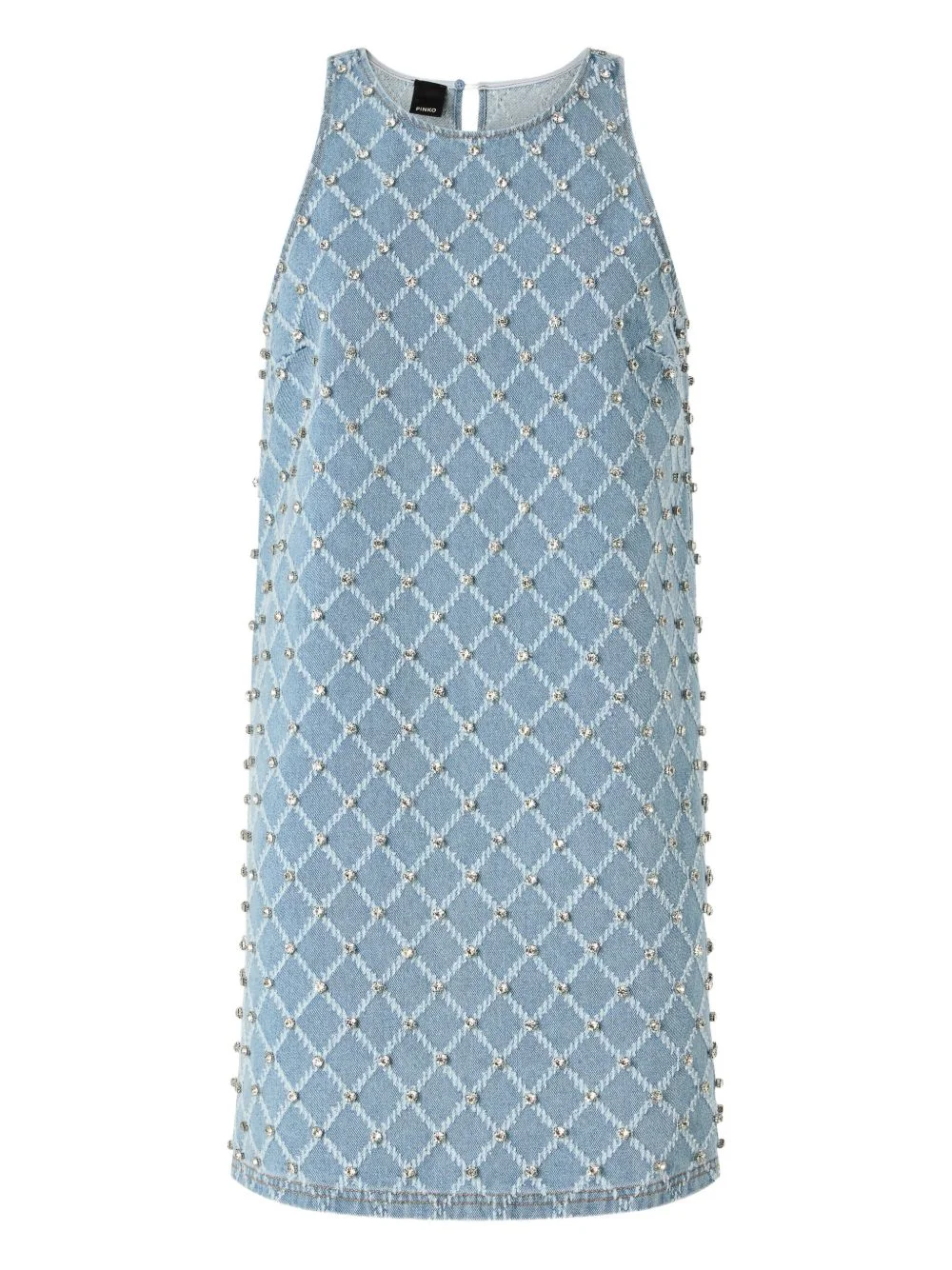 rhinestone-embellished mini dress Highlights - Light blue - Diamond pattern - Rhinestone embellishment - Sleeveless - Round neck - Keyhole detail to the rear Imported Composition Cotton 100% Washing instructions Hand Wash