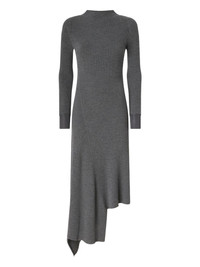 ribbed asymmetric mock-neck dress Highlights - Grey - Ribbed knit - Asymmetric hem - Long sleeves - Mock neck - Straight cuffs Imported Composition Wool 100% Washing instructions Read Manufacturer Guidelines