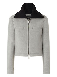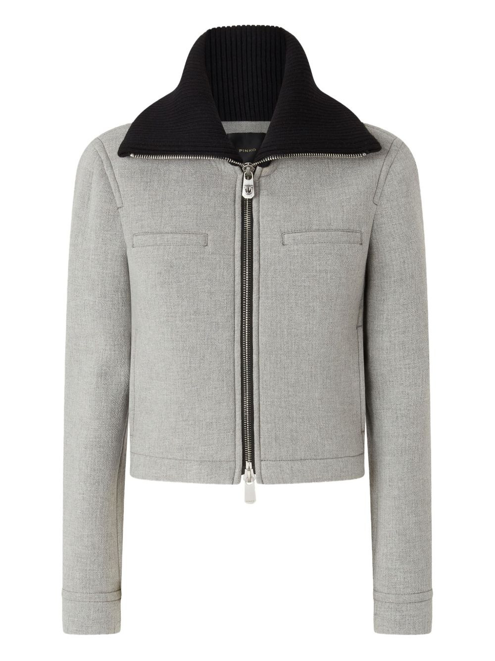 ribbed-collar jacket Highlights - Light grey - Zip fastening - Ribbed collar - Long sleeves Made in Italy Composition Viscose 70%, Wool 30% Washing instructions Read Manufacturer Guidelines